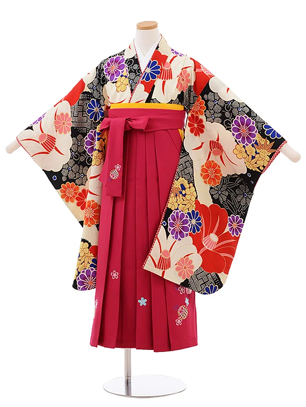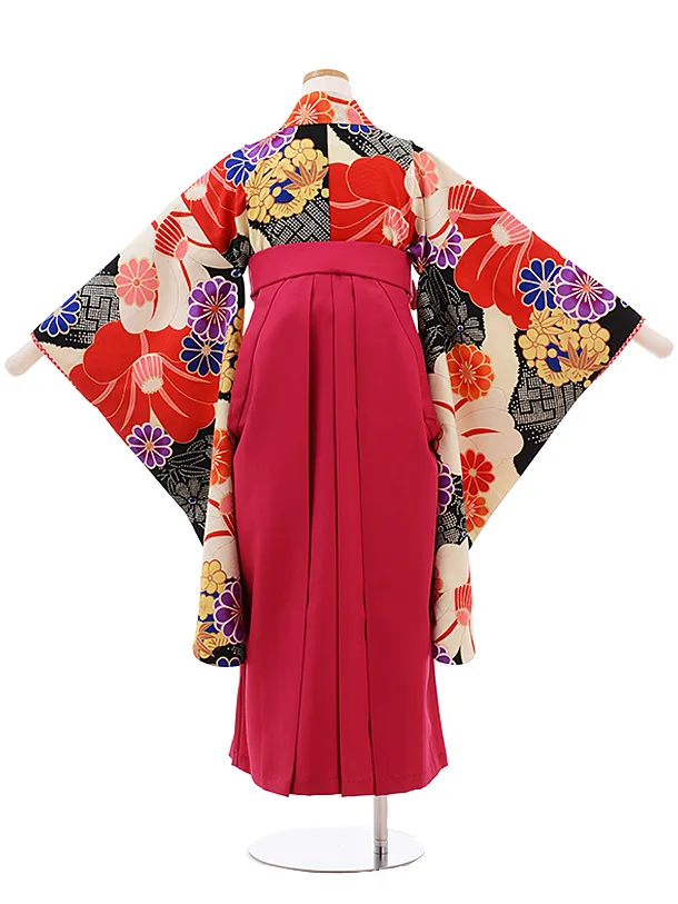 小学生卒業式袴女児 Z069 JAPANSTYLE クリーム地 椿×ローズ袴