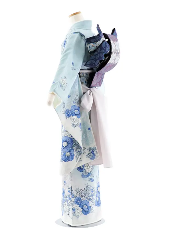 着物、 袋帯、 襦袢、 肌襦袢、 帯揚げ、 帯締め、 重ね衿、はこせこ、しごき、 草履、 バッグ、足袋(ストレッチ)、 腰紐4本、和装ベルト、 帯板 2 枚、伊達締め 2本、帯枕、衿芯、三重仮紐