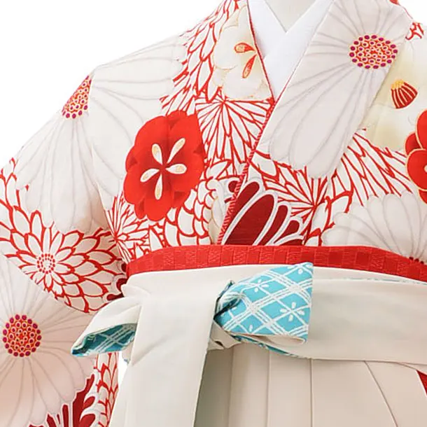 卒業袴レンタル Z096 九重 白 赤 菊椿xクリーム袴