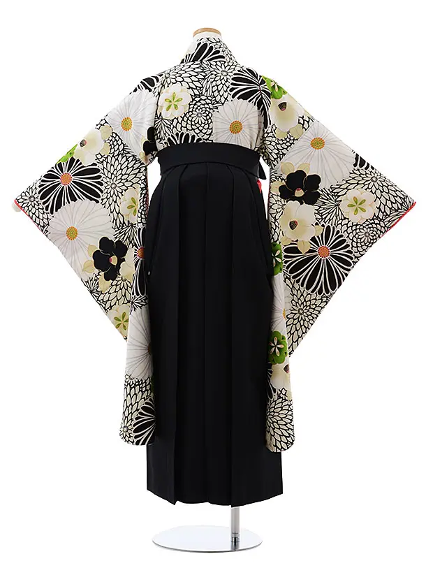 卒業袴レンタル Z099 九重 白 黒 菊椿x黒袴