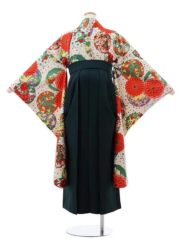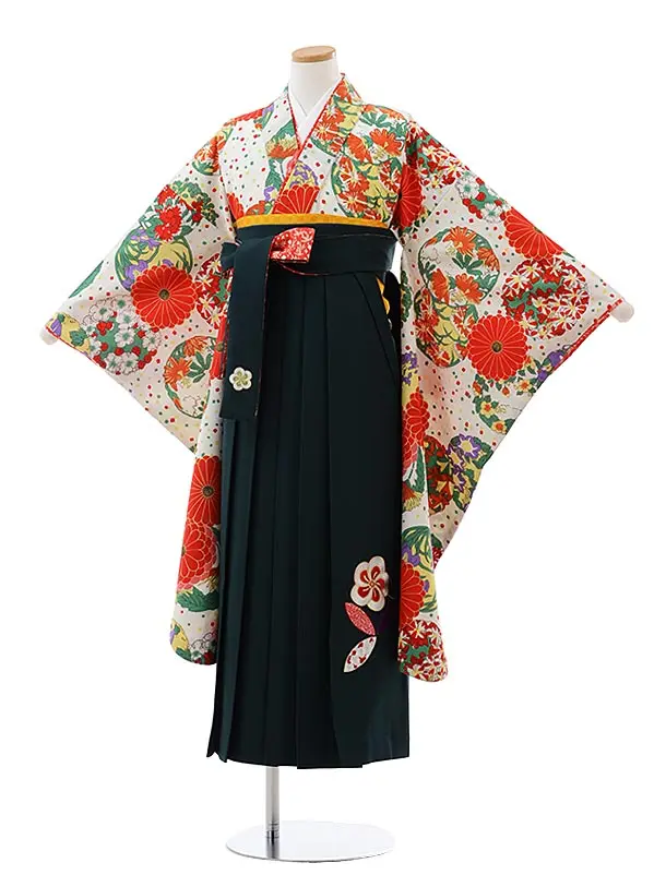 卒業袴レンタル Z104 はいばら 白地 花 丸菊xグリーン袴