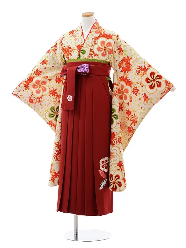 卒業袴レンタル Z112 はいばら クリーム地 梅xエンジ袴