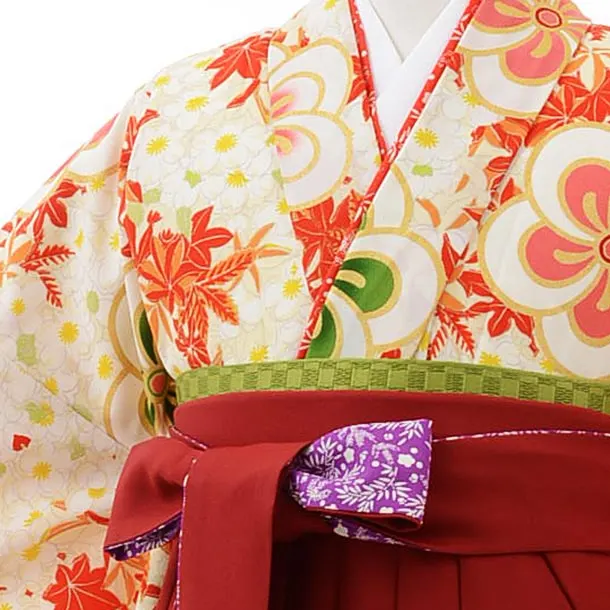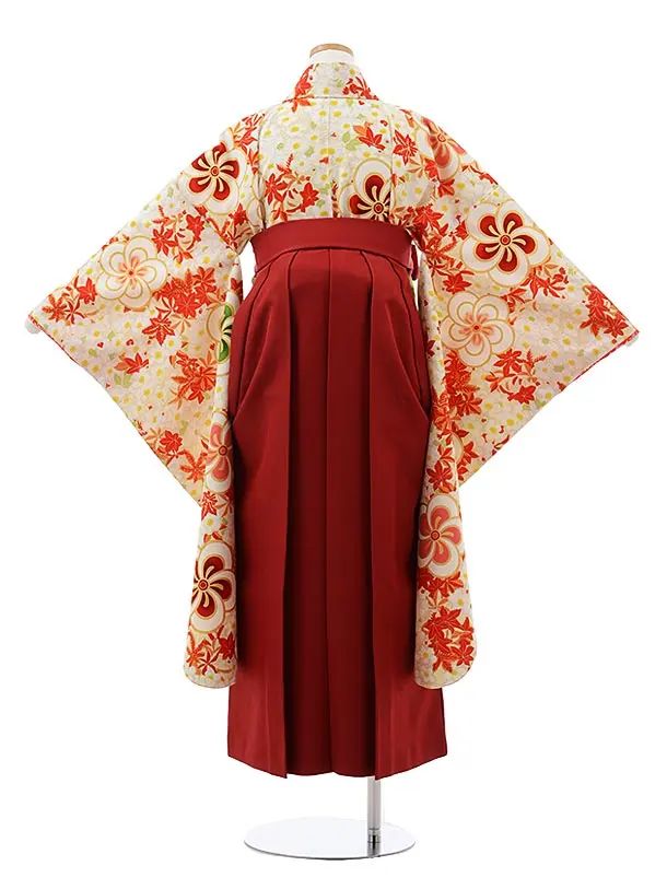 卒業袴レンタル Z113 はいばら クリーム地 梅xエンジ袴