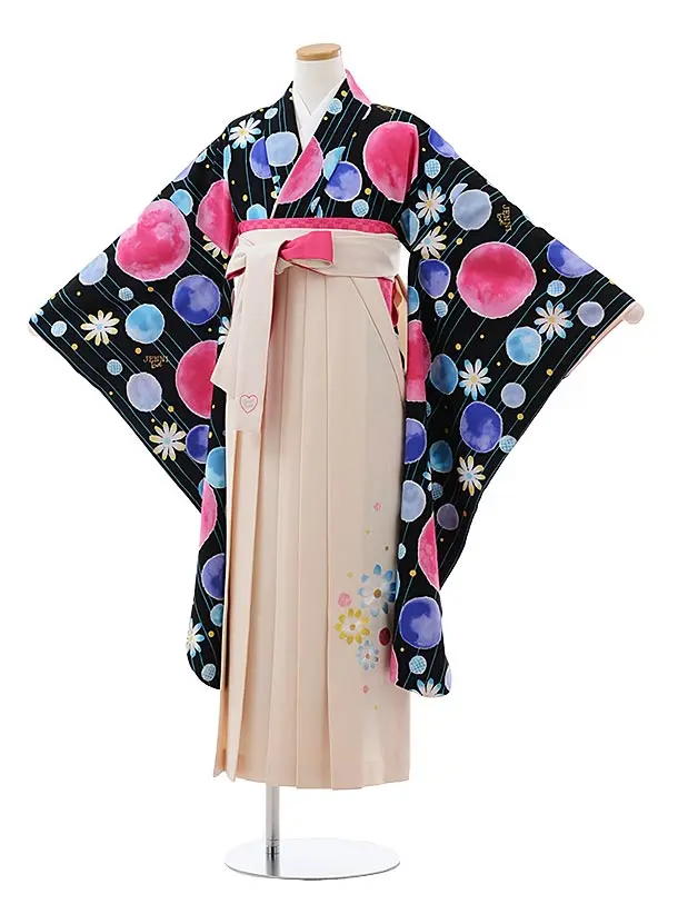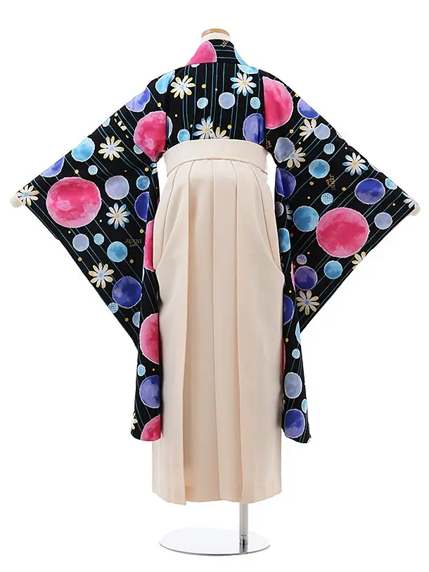 卒業袴レンタル Z116 JENNI love 紺 水玉xクリーム袴