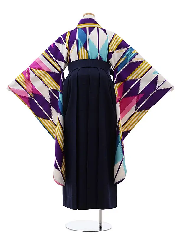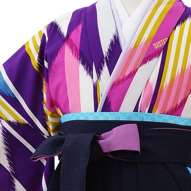 袴レンタルZ118 SISTER JENNI パープル 矢絣x紺チェック袴