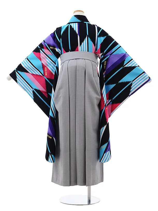 袴レンタルZ120 SISTER JENNI 黒 矢がすりxグレーチェック袴