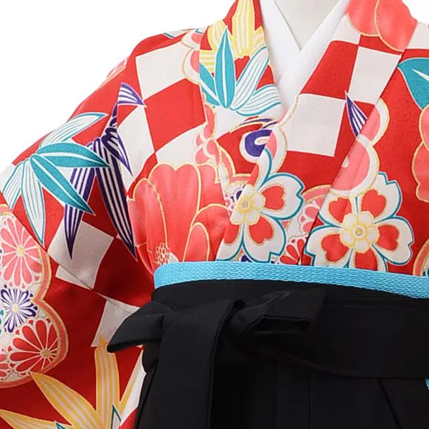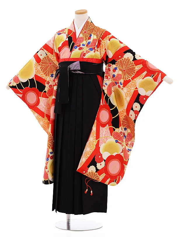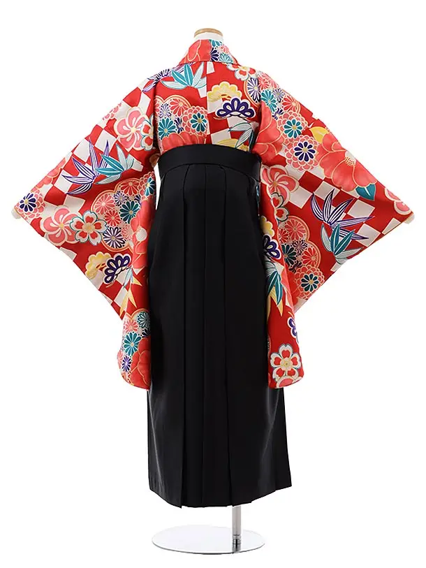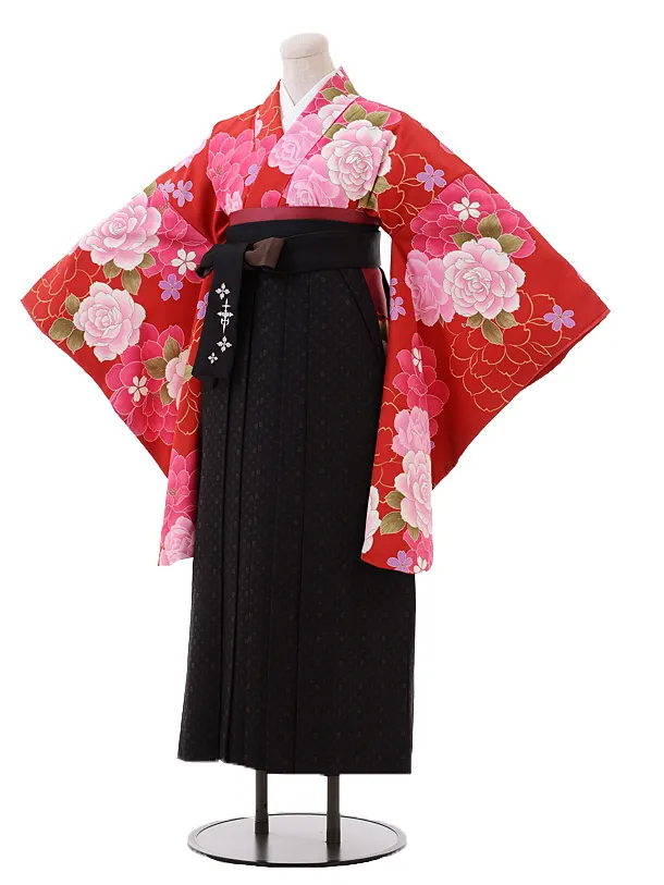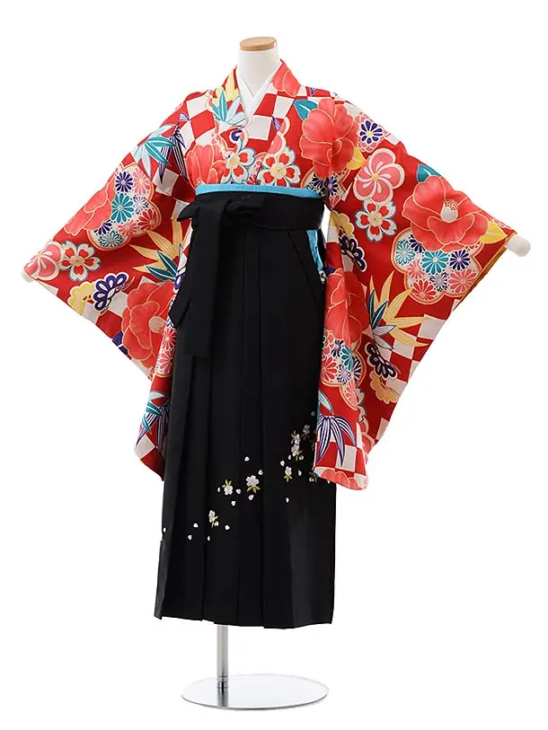 卒業袴レンタル Z122 赤地 松梅椿x黒袴