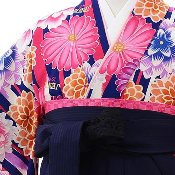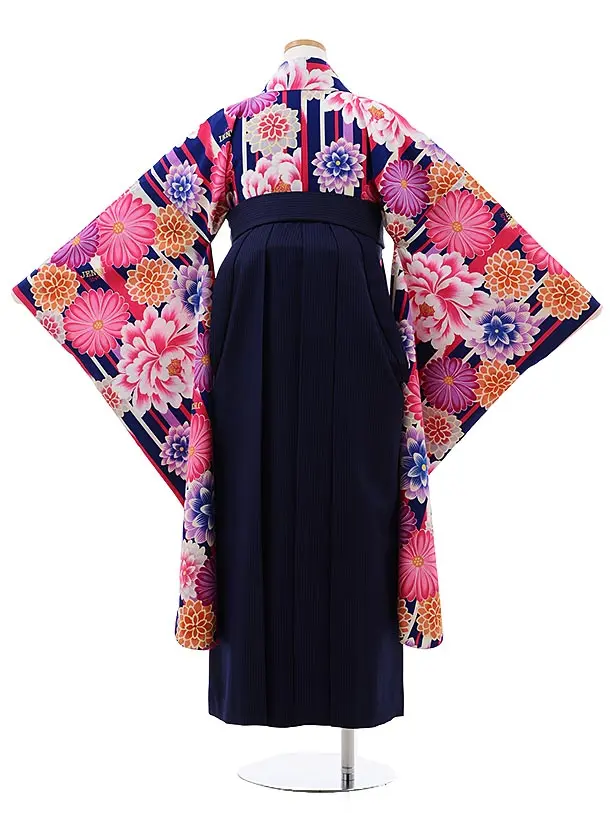 卒業袴レンタル Z127 JENNI love 紺花x紺ストライプ袴