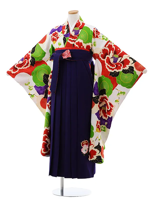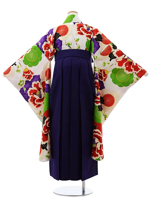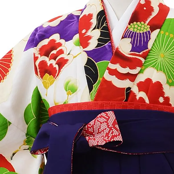 卒業袴レンタル Z130 九重 白地 梅 椿xパープル袴