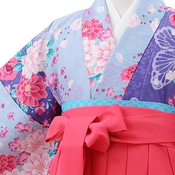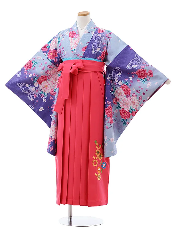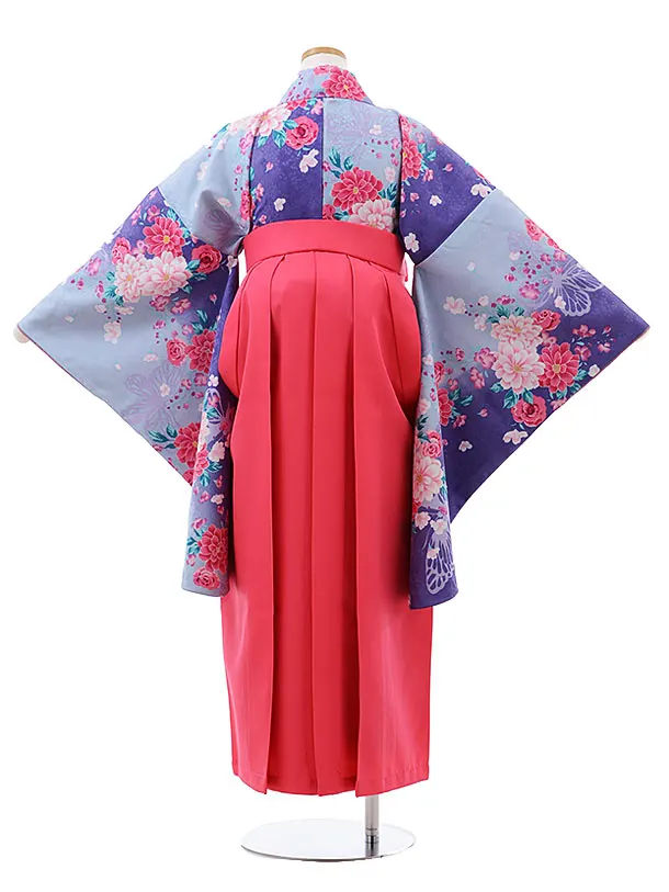 卒業袴レンタル Z131 ブルー パープル ぼかし花xピンク袴
