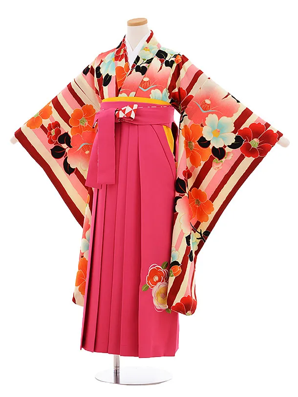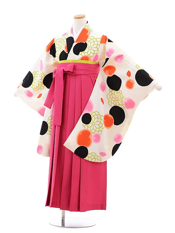 卒業袴レンタル Z132 クリーム色 椿 菊xピンク袴