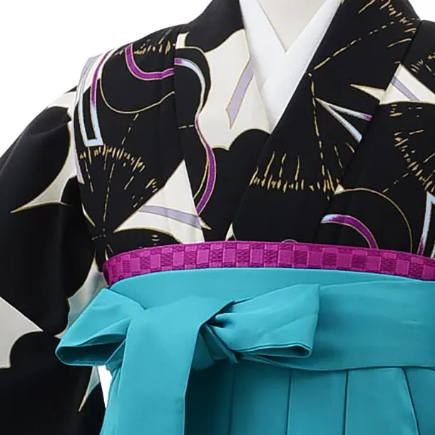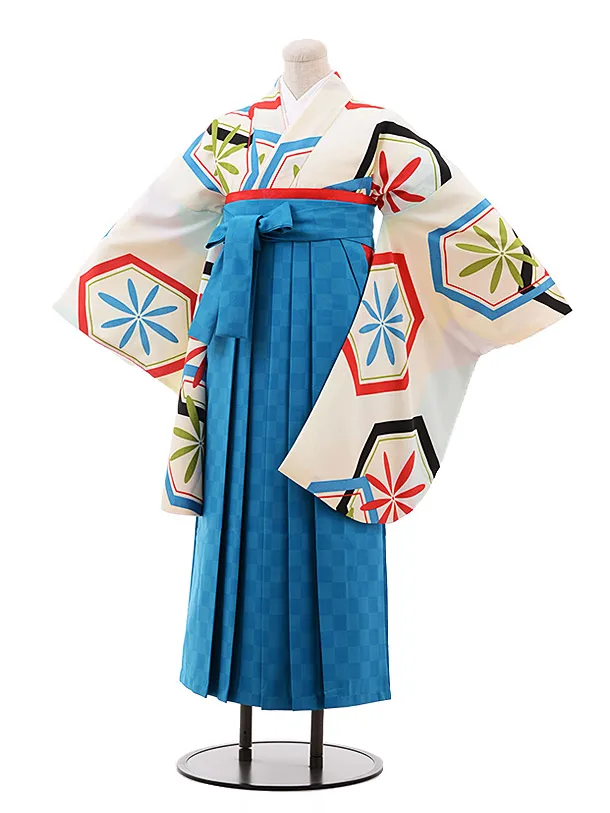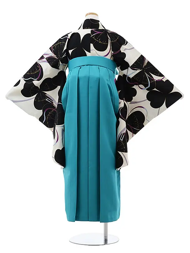 卒業袴レンタル Z135 白地 クローバーxターコイズ袴