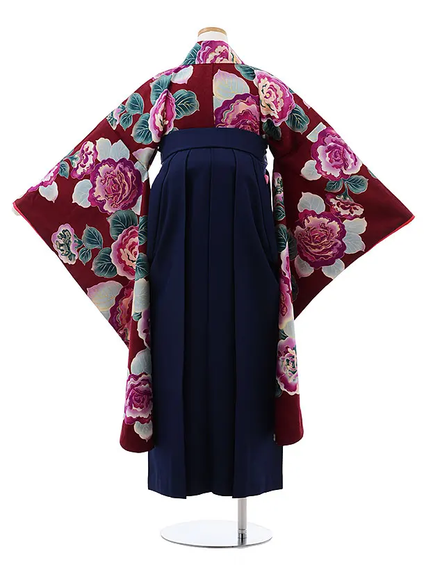 卒業袴レンタル Z139 メゾピアノ ボルドー 花x紺袴