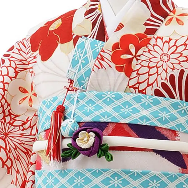 着物、 袋帯、 襦袢、 肌襦袢、 帯揚げ、 帯締め、 重ね衿、はこせこ、しごき、 草履、 バッグ、足袋(ストレッチ)、 腰紐4本、和装ベルト、 帯板 2 枚、伊達締め 2本、帯枕、衿芯、三重仮紐