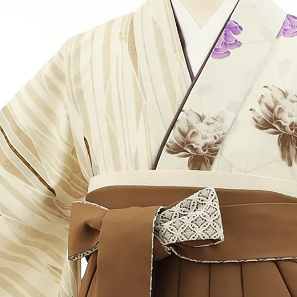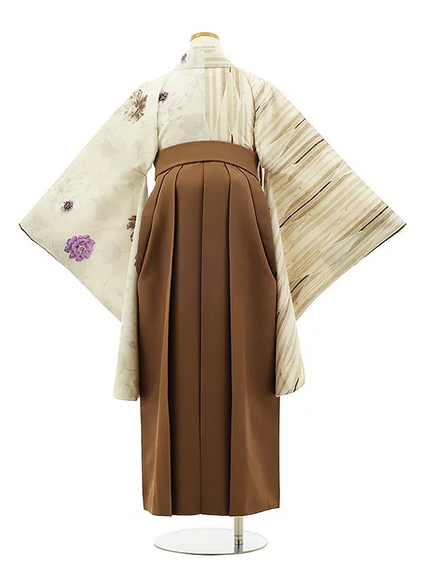 小学生袴Z182 JAPANSTYLEオフ/パープル片身替り薔薇矢絣x茶袴
