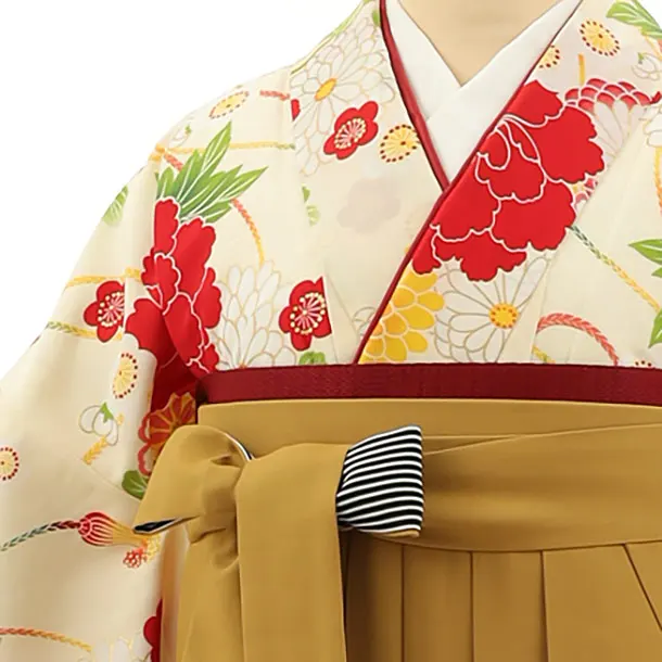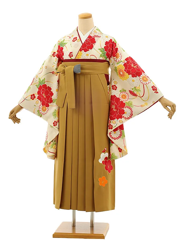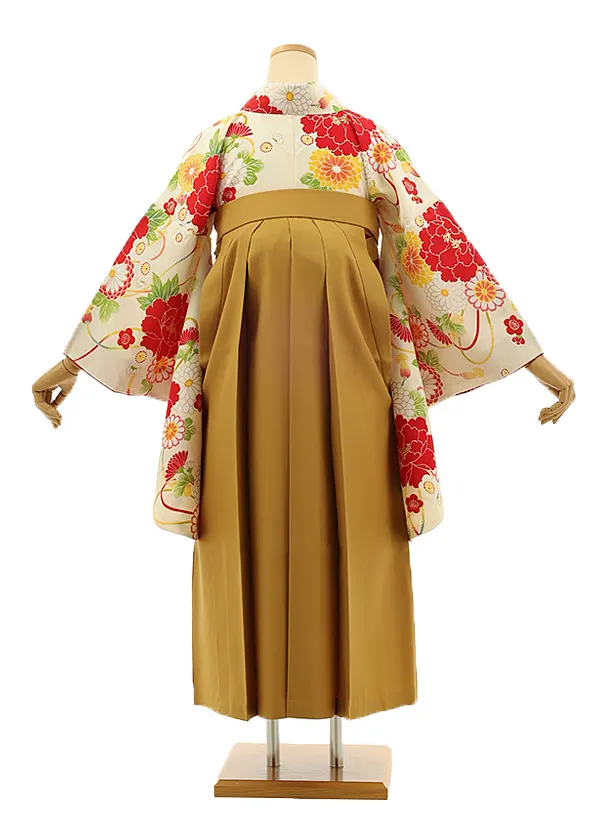 小学生袴Z190 クリーム地菊ぼたん×からし袴