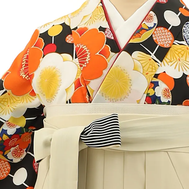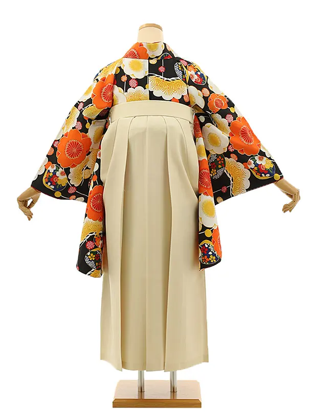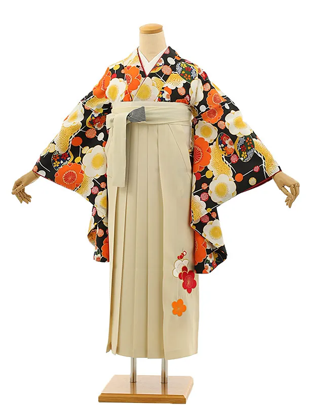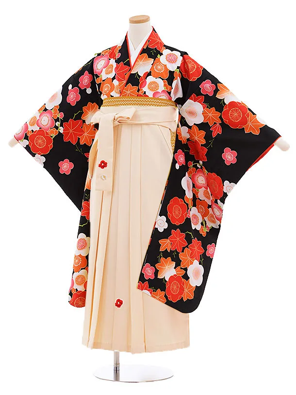 小学生袴Z191 黒地梅松×アイボリー袴