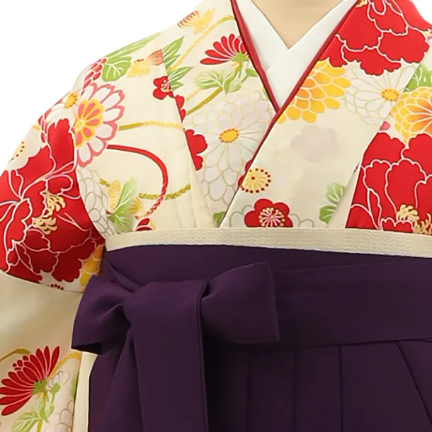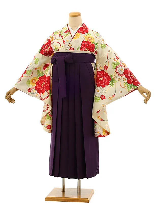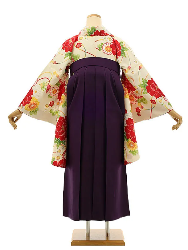 小学生袴Z193 クリーム地菊ぼたん×パープル袴