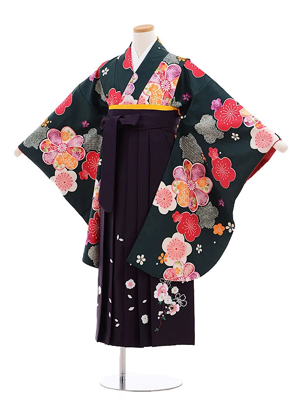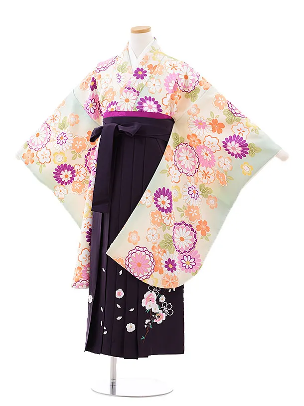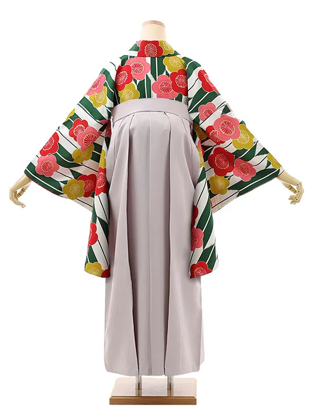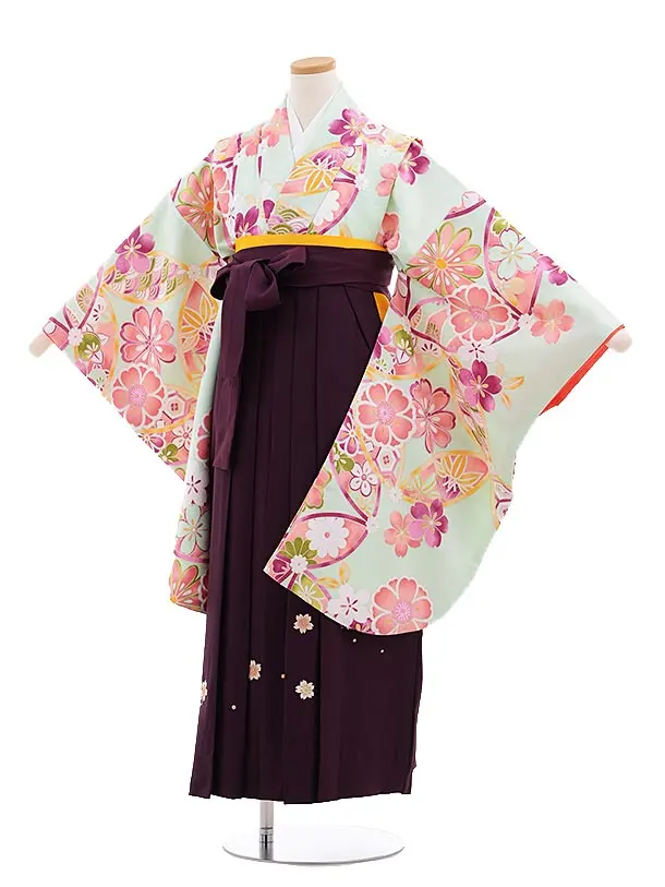 小学生袴Z194 グリーン矢柄梅×ラベンダー袴