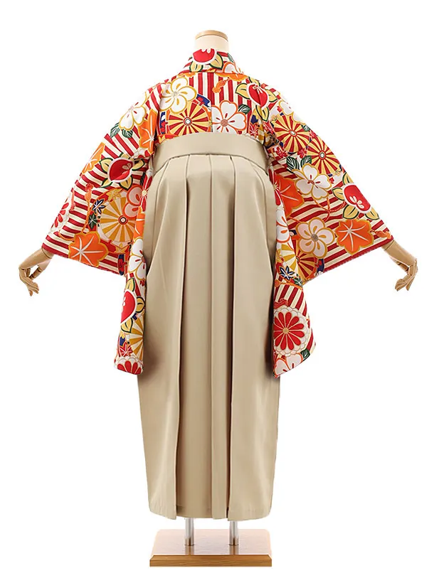 小学生袴Z199 赤ストライプ花×ベージュ袴