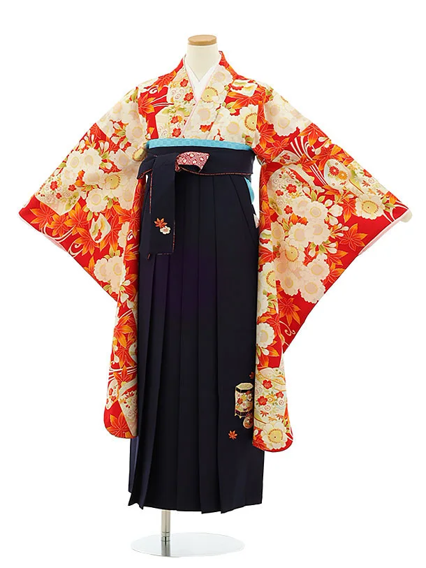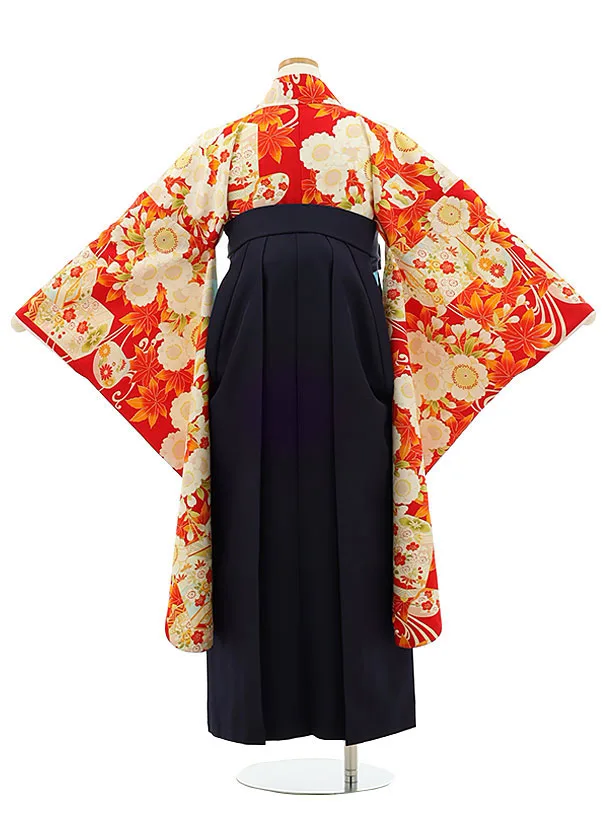 小学生袴Z209 赤地桜×紺袴