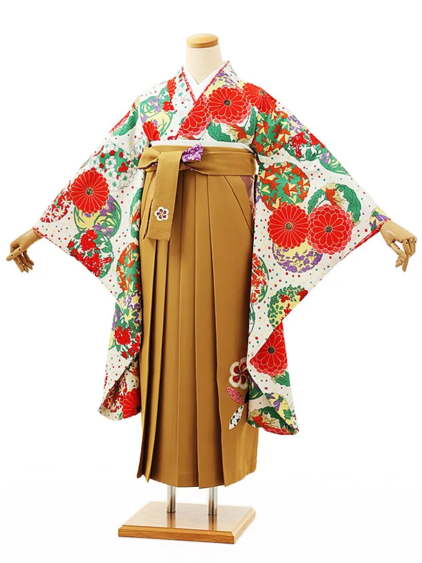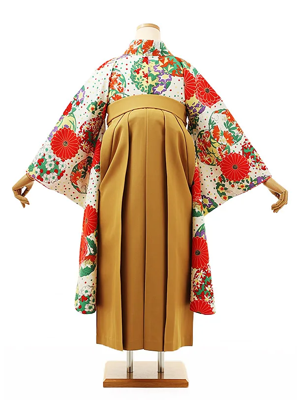 小学生卒業袴レンタルZ236オフホワイト菊丸紋xからし