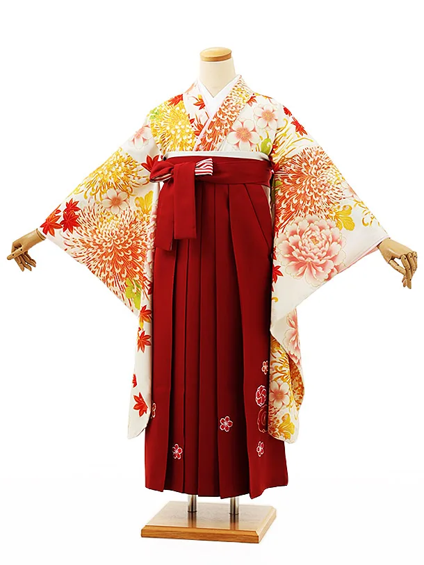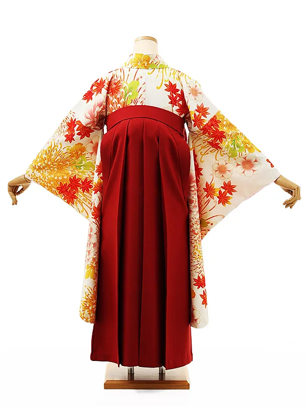 小学生卒業袴レンタルZ247クリーム乱菊牡丹xエンジ