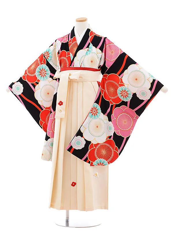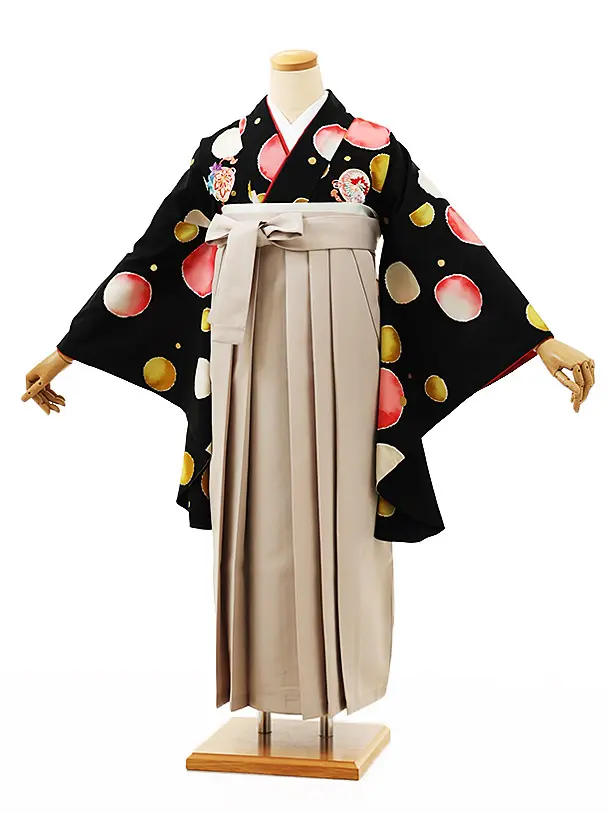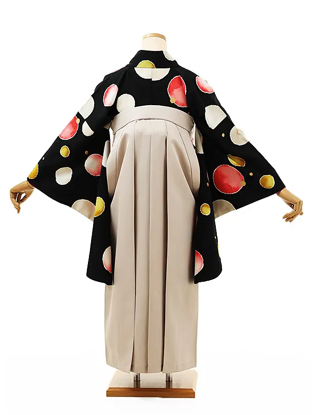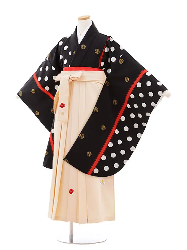小学生卒業袴レンタルZ252黒ドット刺繍まりxベージュ