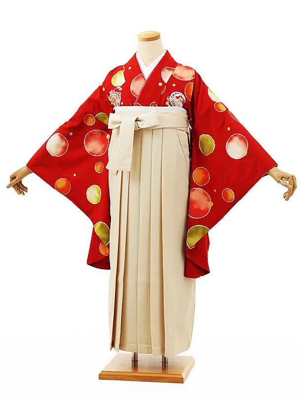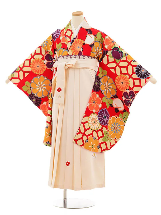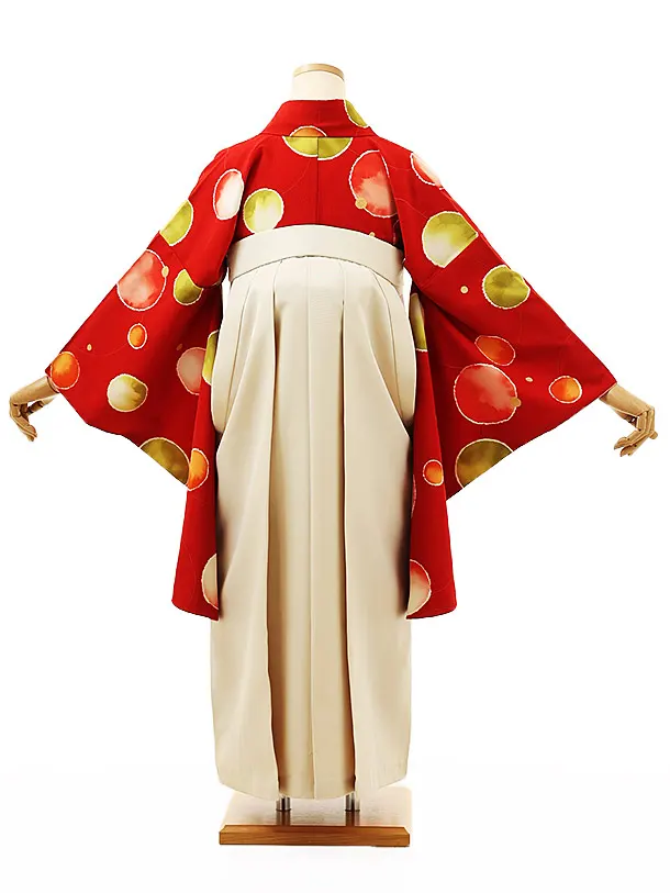 小学生卒業袴レンタルZ254赤ドット刺繍まりxアイボリー