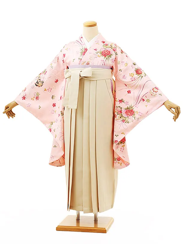 小学生卒業袴レンタルZ259ピンクまり薬玉xアイボリー