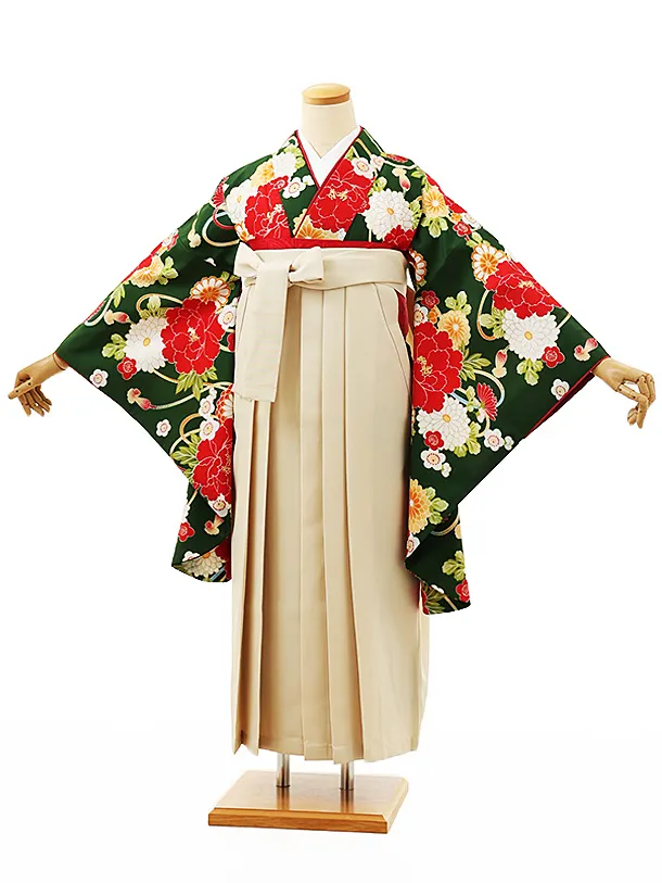 小学生卒業袴レンタルZ262グリーン薬玉xアイボリー