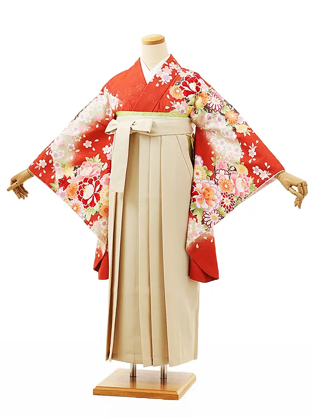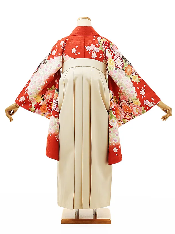 小学生卒業袴レンタルZ263赤桜花づくしxアイボリー