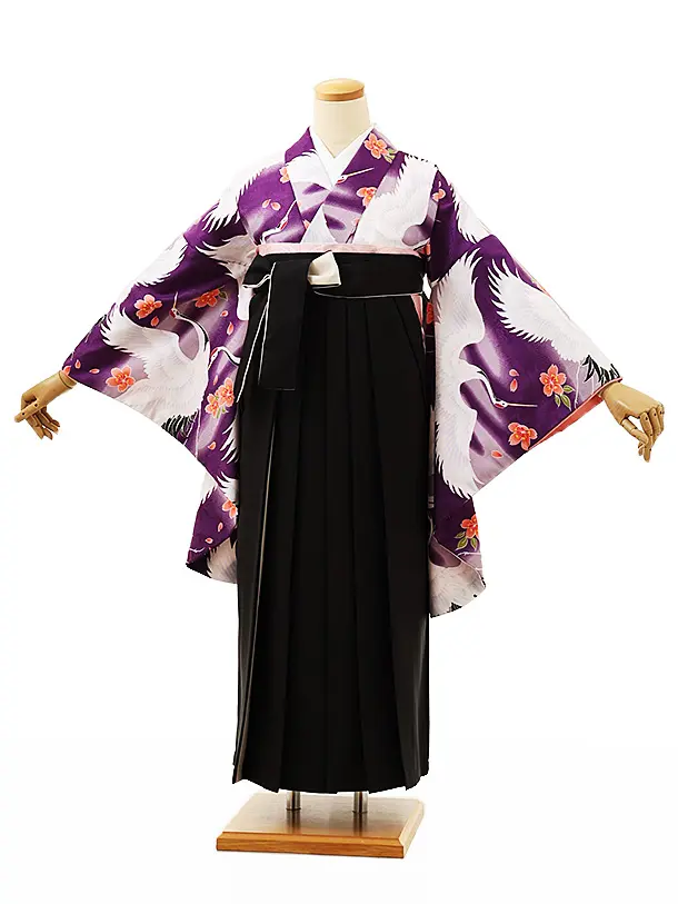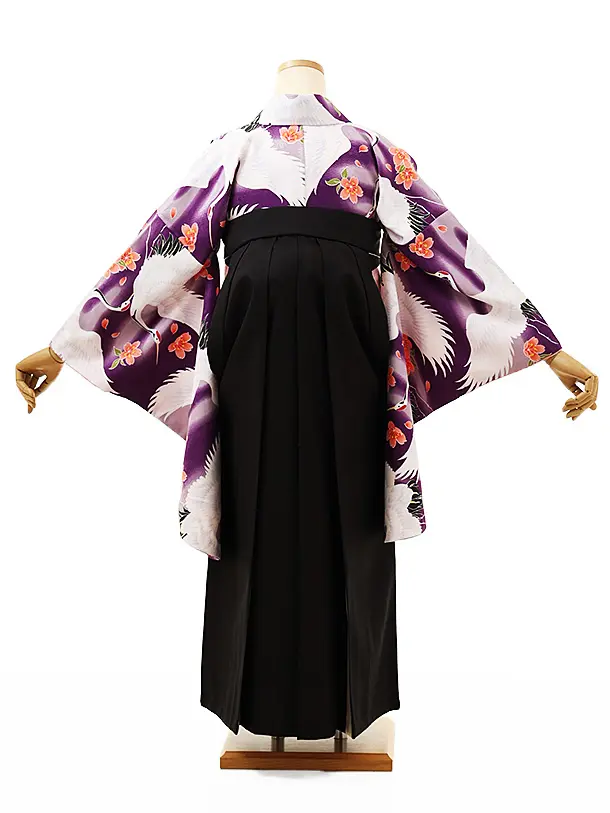 小学生卒業袴レンタルZ266パープル桜鶴x黒クリーム