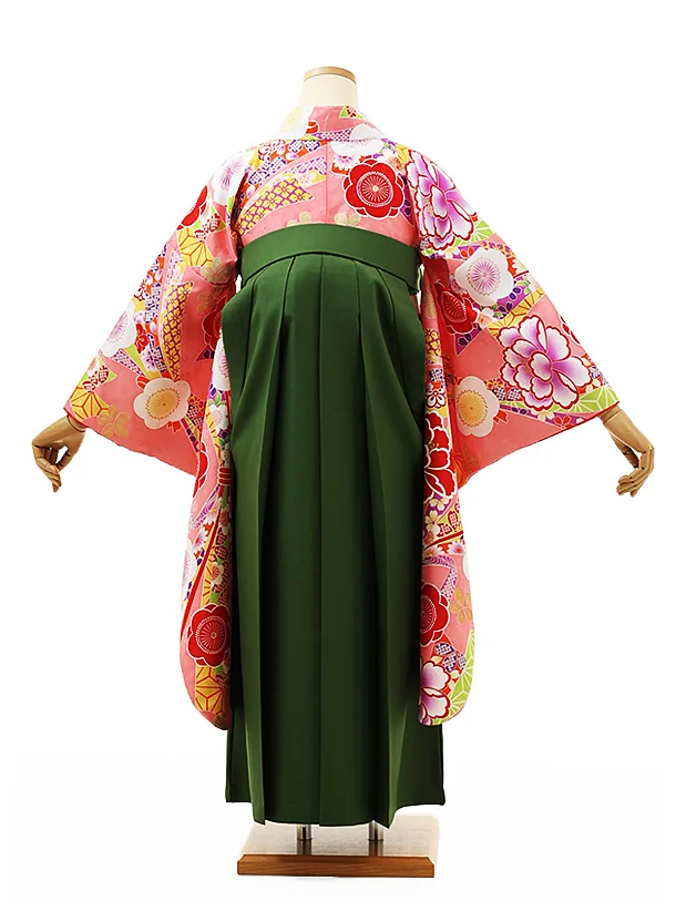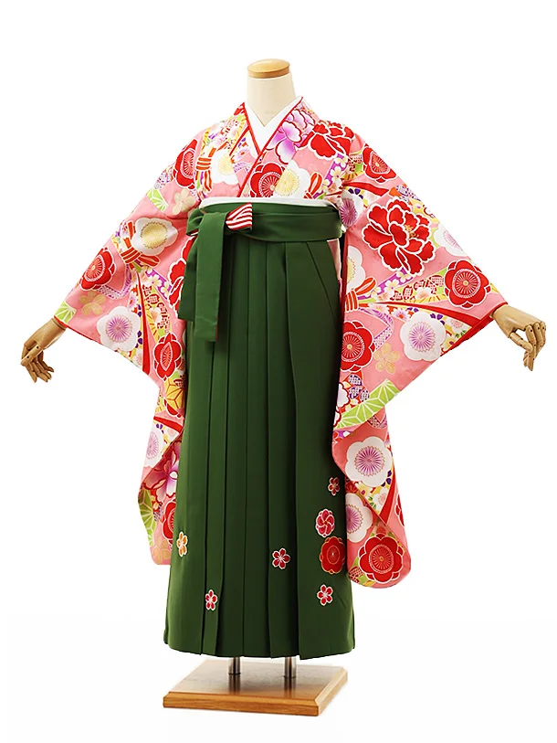 小学生卒業袴レンタルZ270ピンク束ね熨斗梅牡丹xグリーン