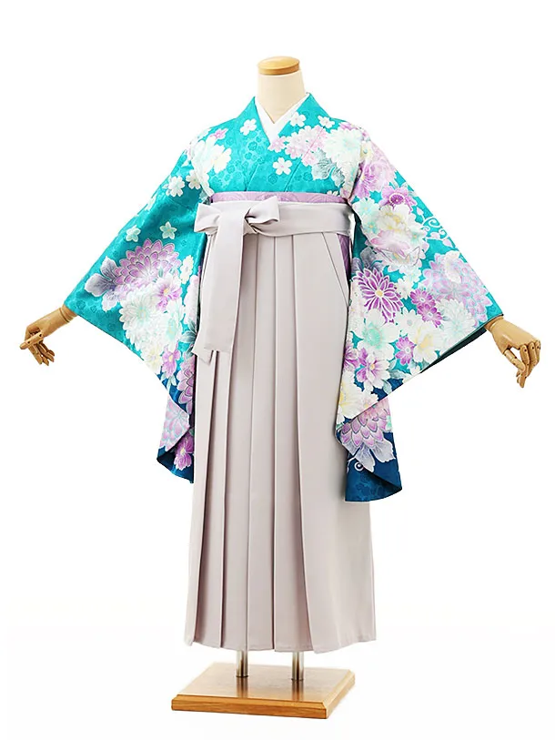 小学生卒業袴レンタルZ282エメラルドグリーン花づくしxうすラベンダー