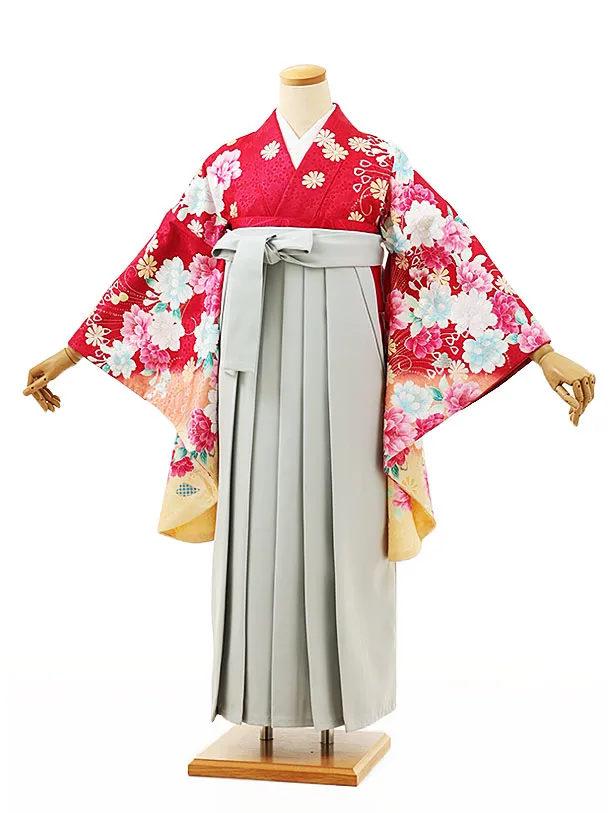 小学生卒業袴レンタルZ286チェリーピンク花づくしxグレー