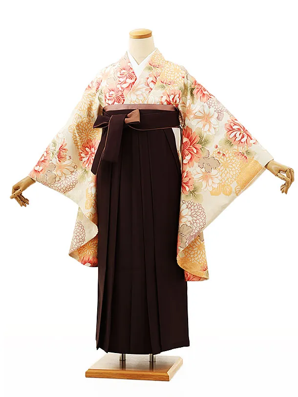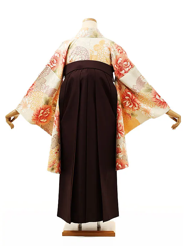 小学生卒業袴レンタルZ298アイボリー菊xこげ茶