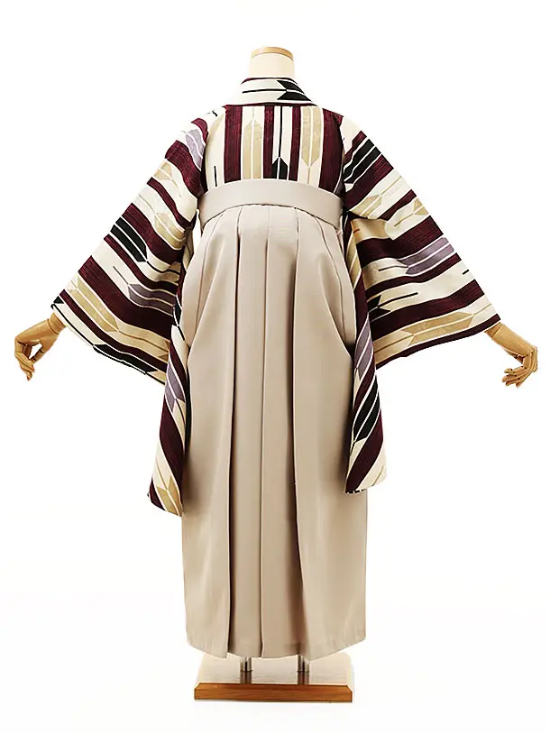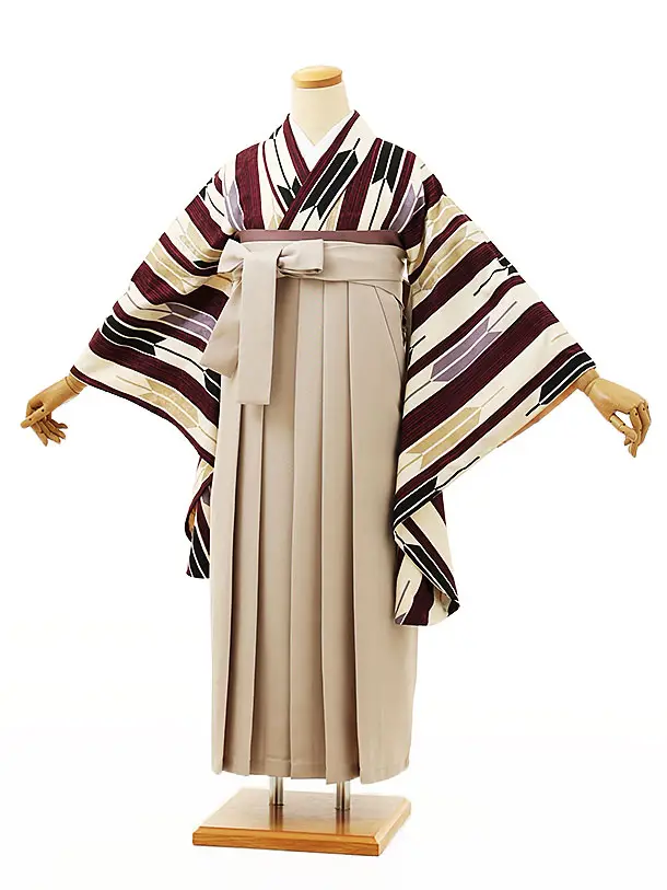 小学生卒業袴レンタルZ316 クリーム地矢柄×グレージュ