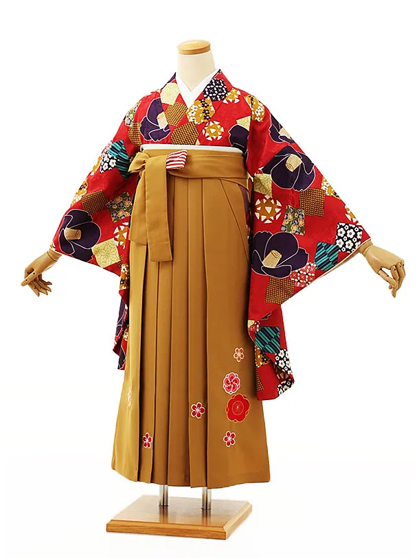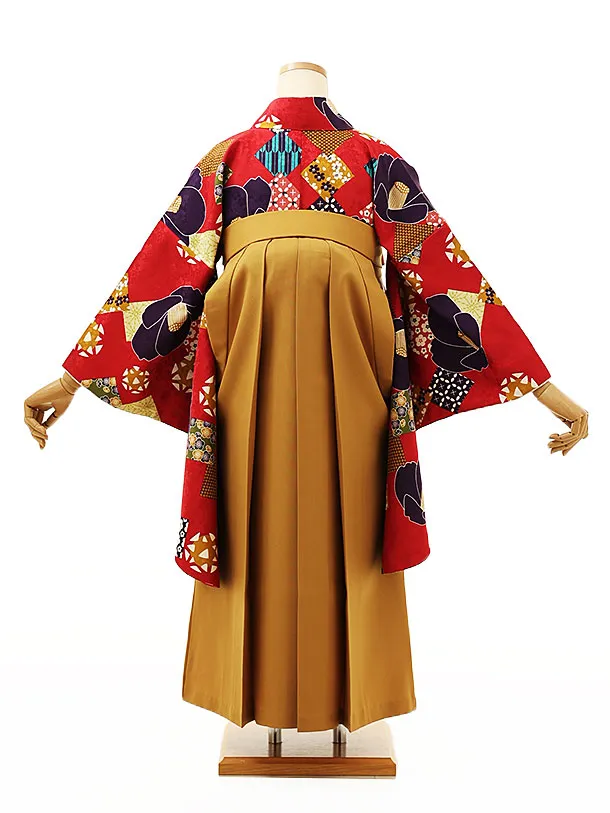 小学生卒業袴レンタルZ317 赤地椿×からし