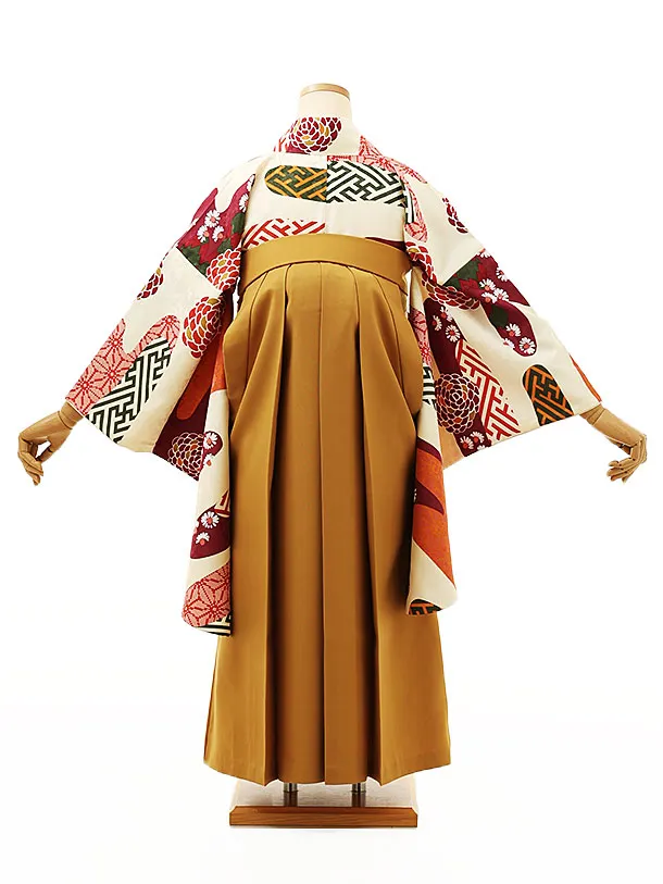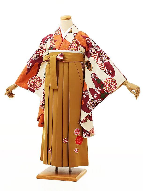 小学生卒業袴レンタルZ320 クリーム地かすみに花×からし