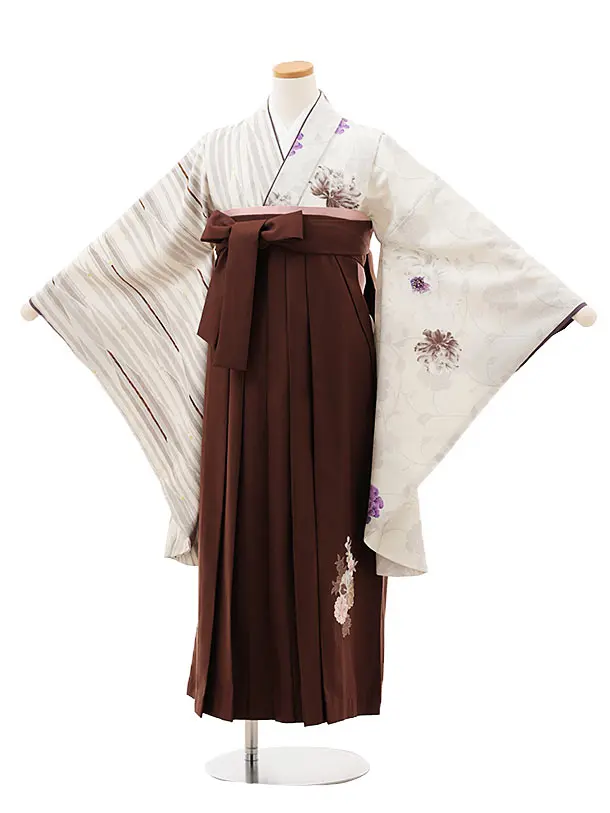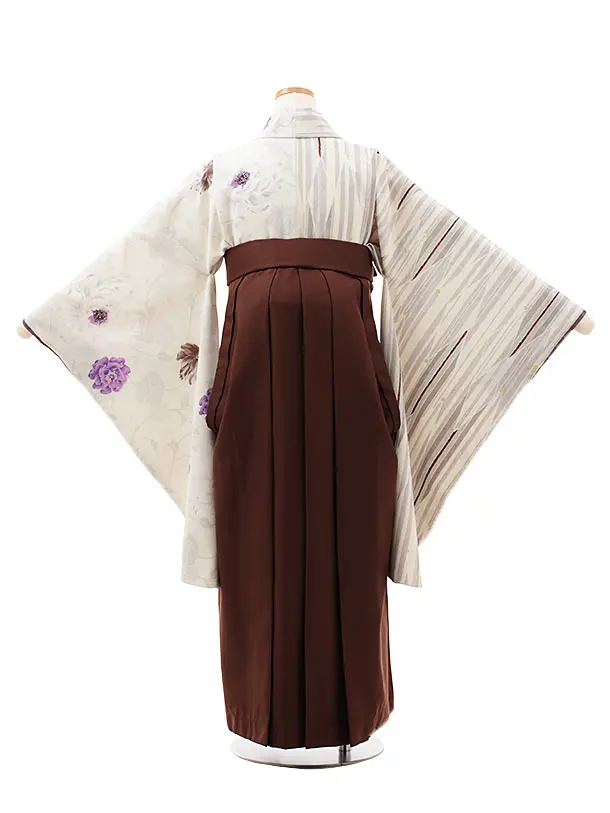 小学生卒業式袴 Z341オフ パープル片身替り薔薇矢絣x茶