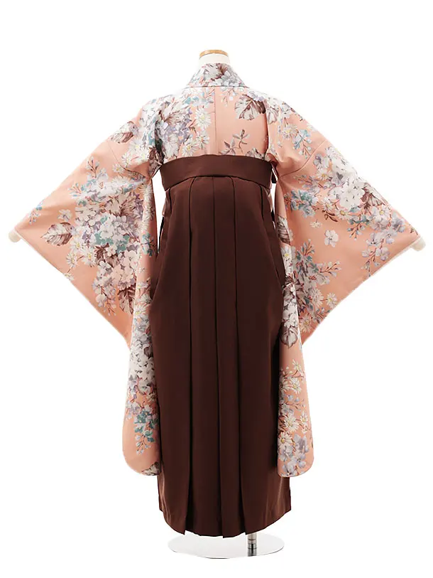 小学生卒業式袴レンタル(女の子) Z343 サーモンピンク小花ブーケ×茶