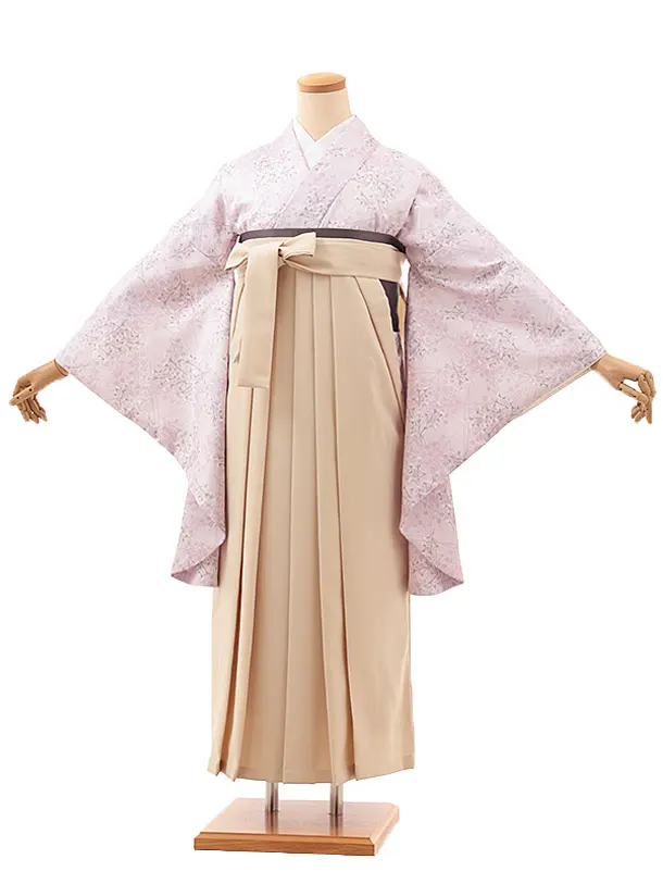 小学生卒業式袴レンタル(女の子) Z370 うすパープルかすみ草×アイボリー