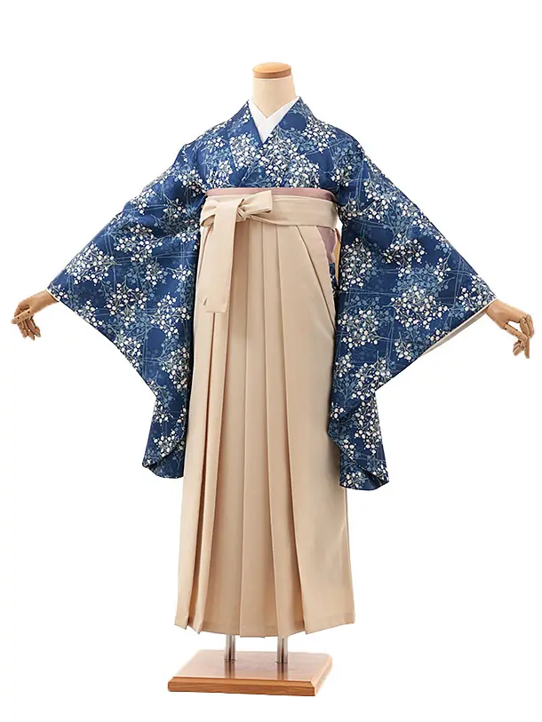 小学生卒業式袴レンタル(女の子) Z371 ブルーかすみ草×アイボリー