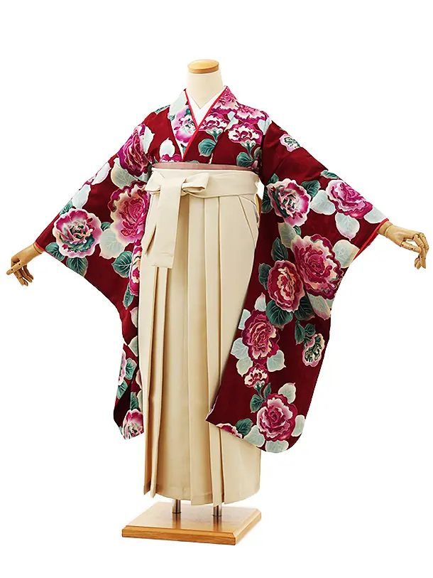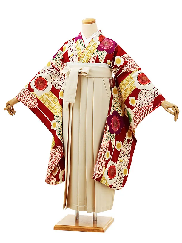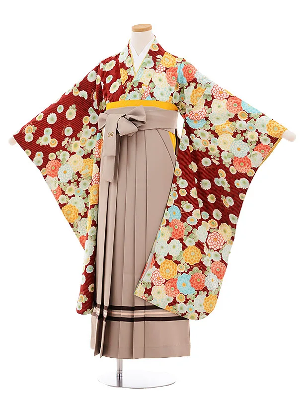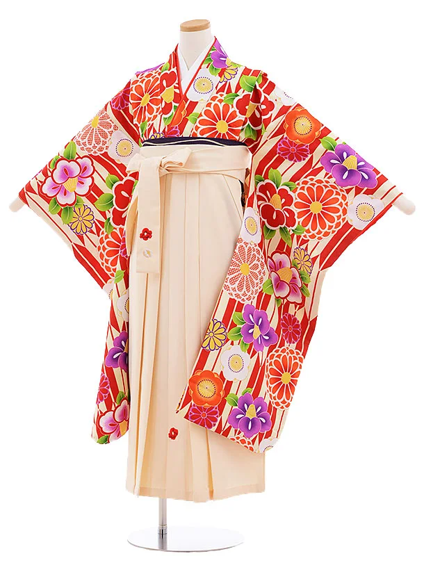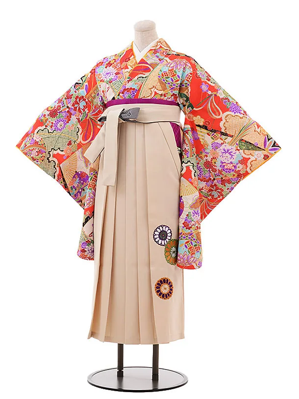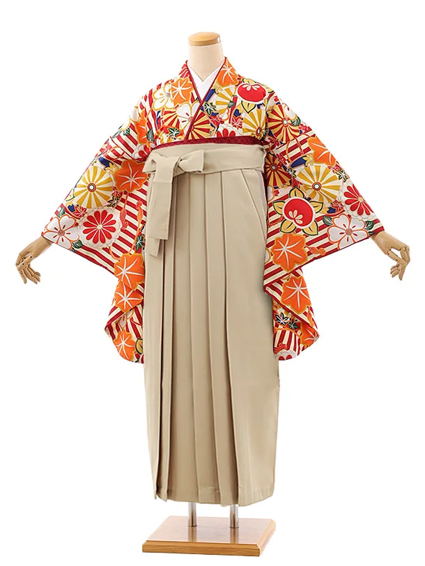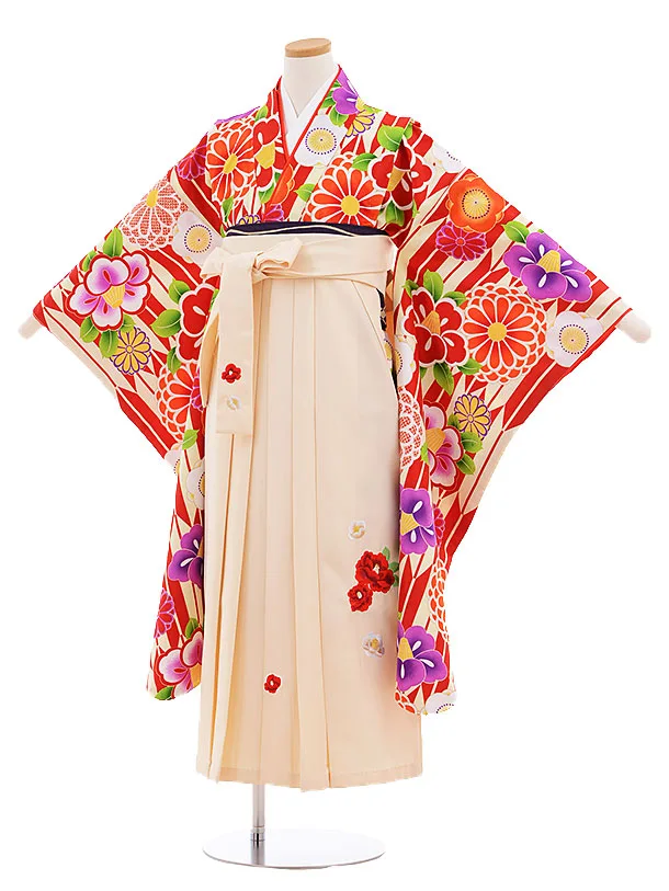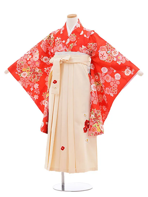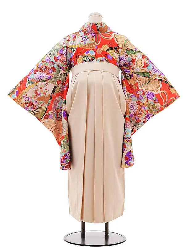 小学生卒業式袴レンタル(女の子) Z379 赤地 古典×ベージュ袴