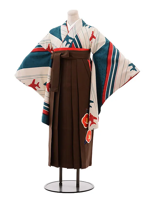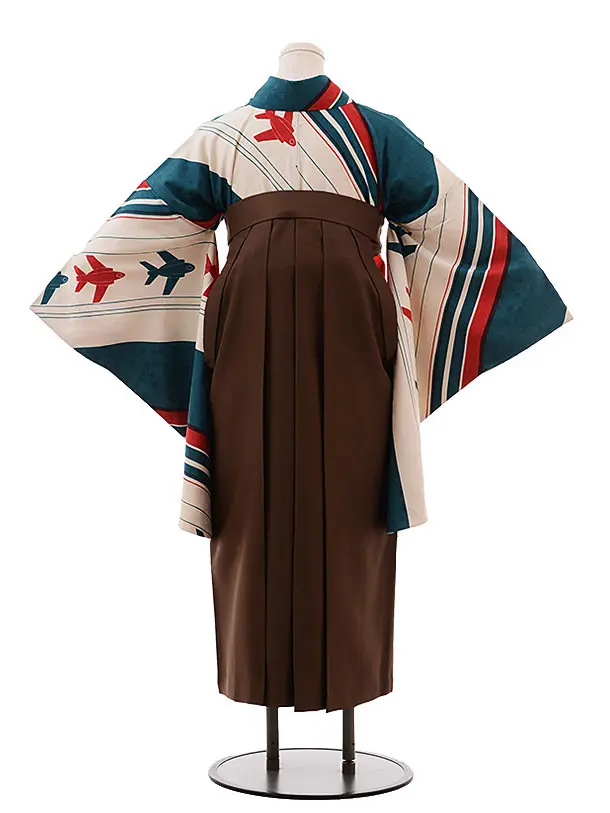 小学生卒業式袴レンタル(女の子) Z380 飛行機×ブラウン袴