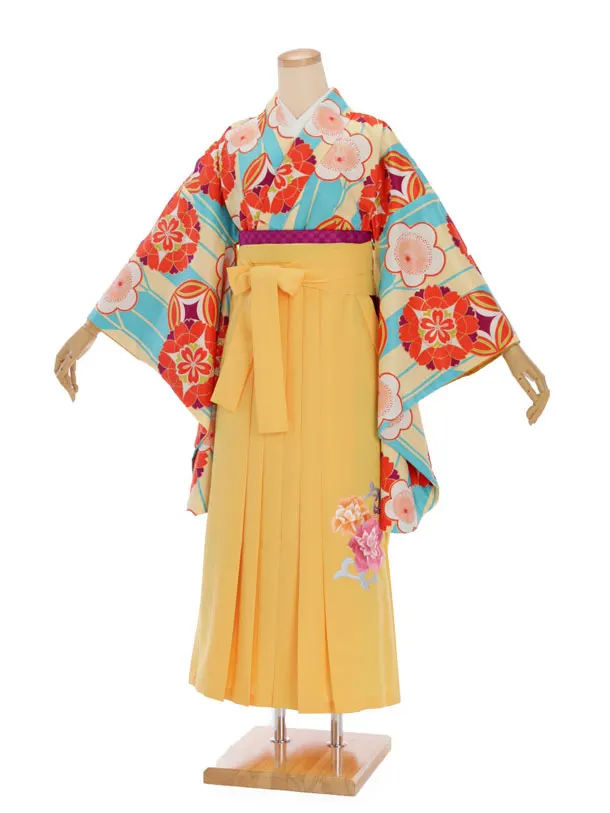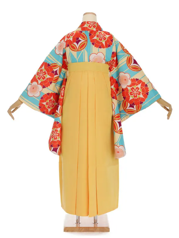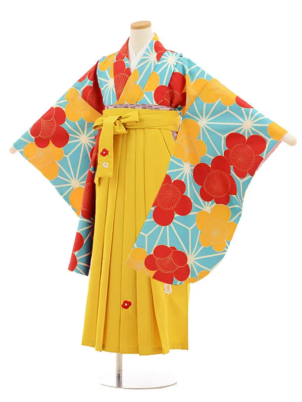 小学生卒業式袴レンタル(女の子) Z382 水色 矢羽根 x 黄色袴
