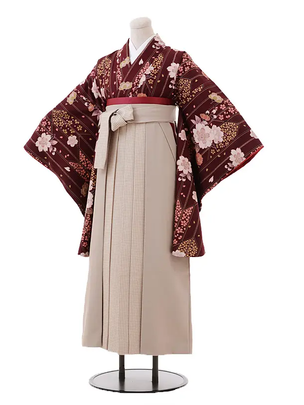 小学生卒業式袴(女の子) Z399モカブラウン花xアイボリー
