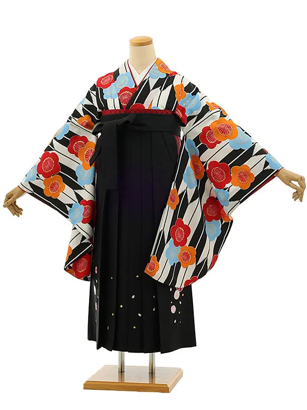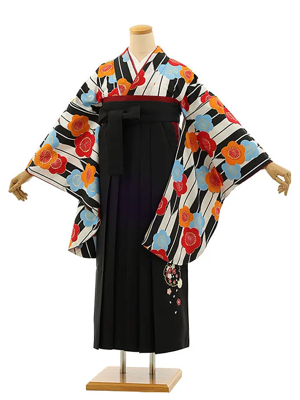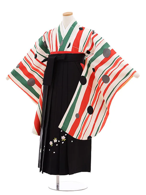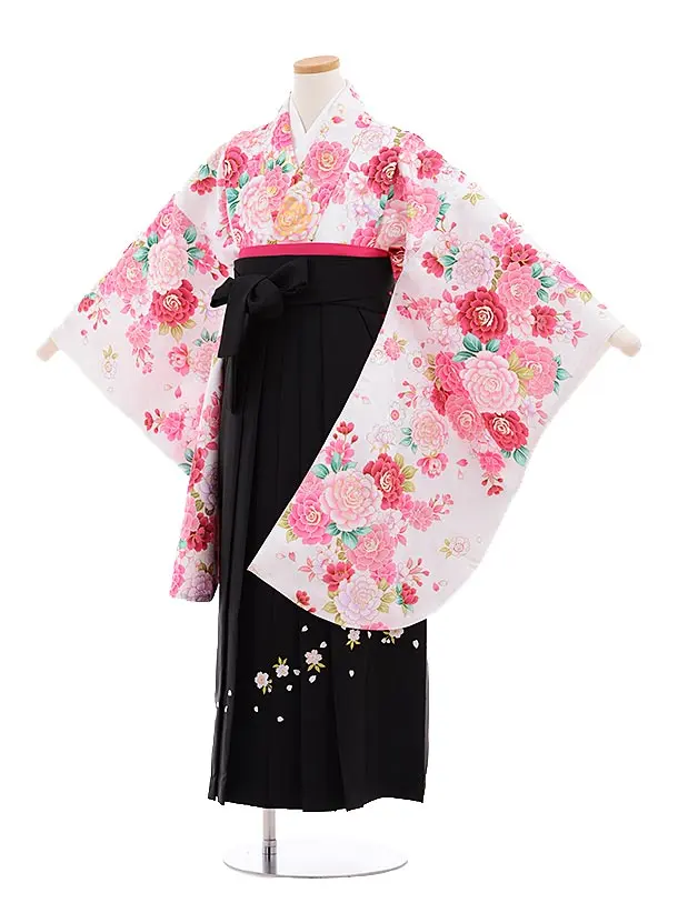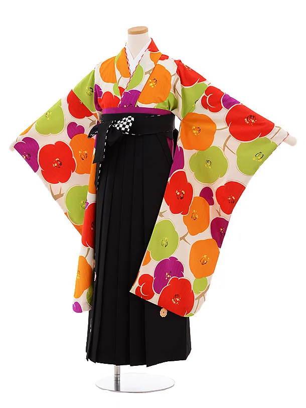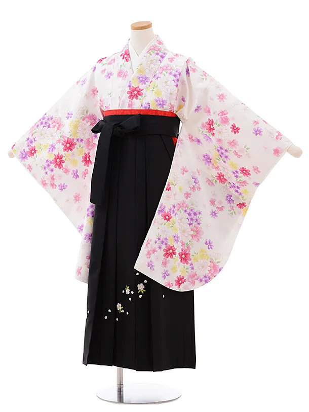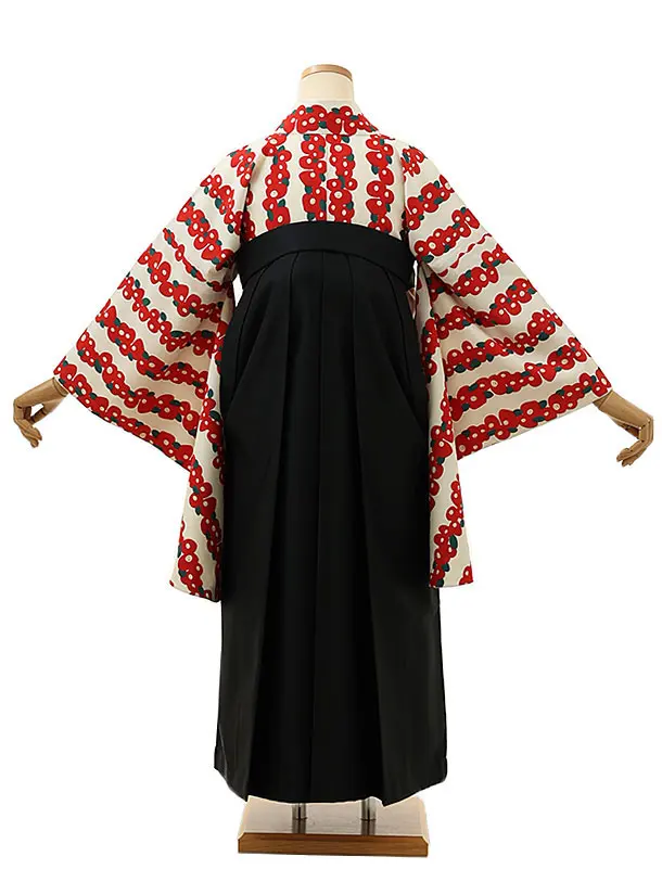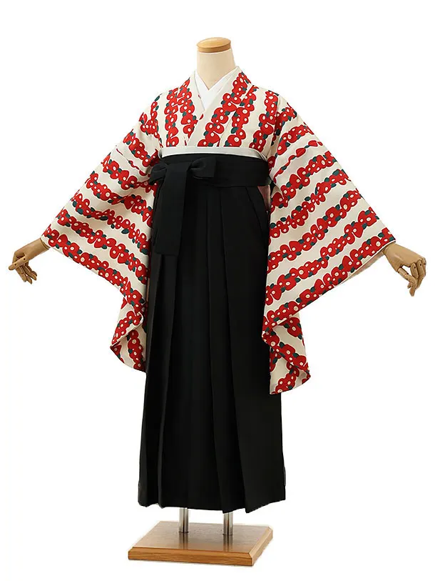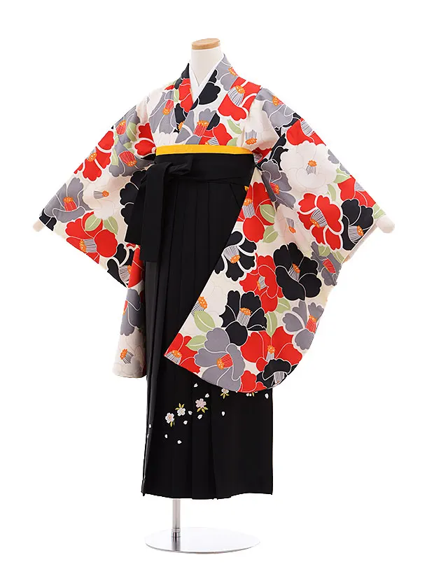 小学生卒業式袴レンタル(女の子) Z401アイボリー赤椿×黒
