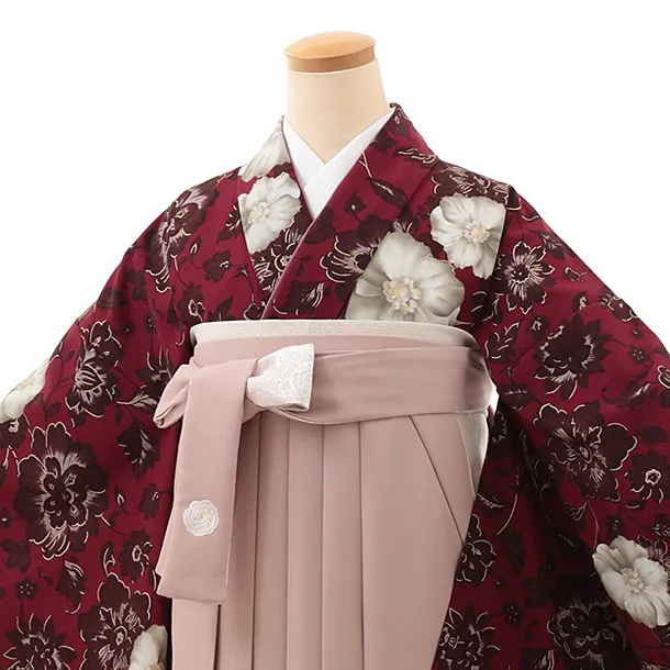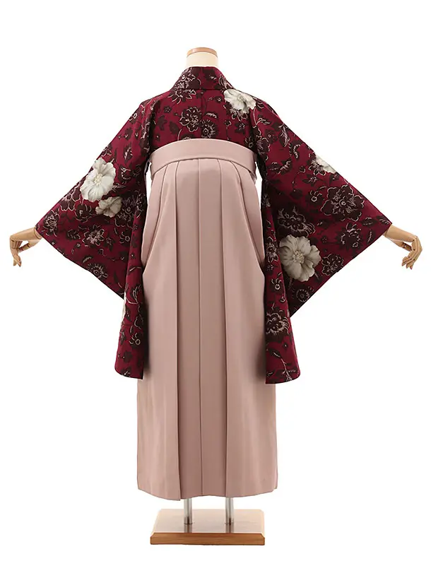 小学生卒業式袴(女の子) Z411 紅一点 ボルドー華更紗×モーヴピンク